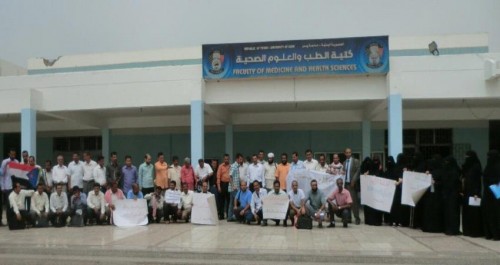 أوائل الطلبة بجامعة عدن ينظمون وقفة احتجاجية ويناشدون تثبيتهم