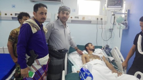 وكيل محافظة أبين يزور جرحى الحادث الإرهابي بقاعدة العند (صور)