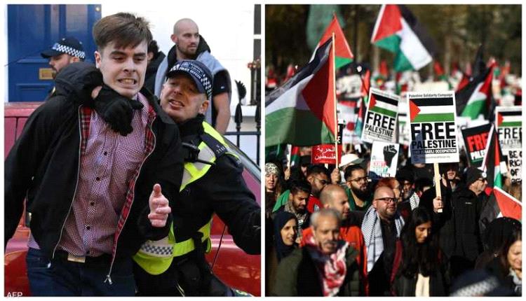 مئات الآلاف يخرجون في بريطانيا دعما لفلسطين وآلاف اليمينيين يواجهونهم بالشغب