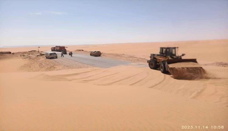 إزاحة وتسطيح الرمال المتحركة للطريق الدولي عتق_العبر شبوة
