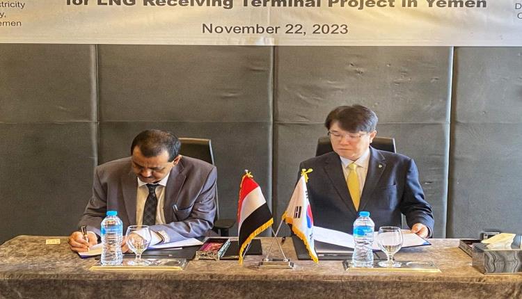 اليمن توقع مع شركة كورية على مذكرة تفاهم لإنشاء وحدة معالجة الغاز لتشغيل الكهرباء