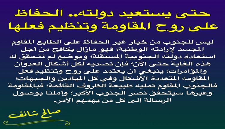 سياسي جنوبي يدعو للحفاظ على روح المقاومة وتنظيم فعلها لاستعادة الدولة