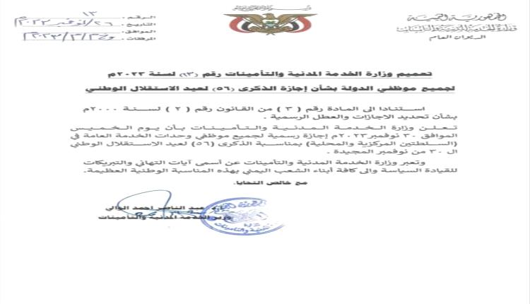 تعميم وزارة الخدمة المدنية والتأمينات