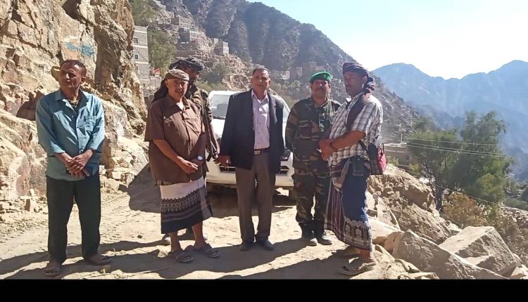مدير عام يهر يافع يزف بشرى للأهالي على هامش زيارته لمشروع طريق يهر- ضيك-المفلحي