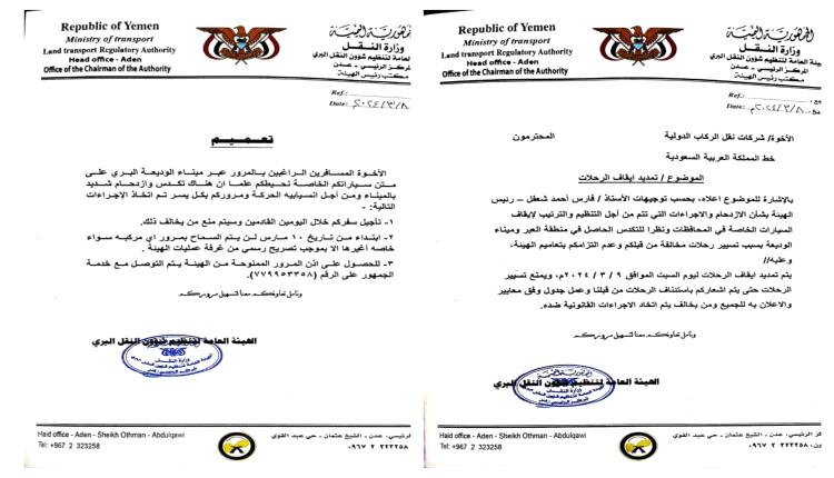هيئة النقل تمدد إيقاف الرحلات عبر "الوديعة" وتتخذ إجراءات لتنظيم مرور السيارات الخاصة