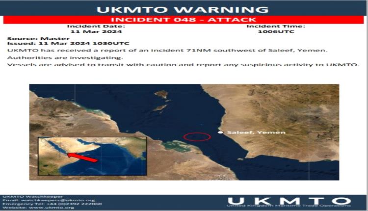 بريطانيا : بلاغ عن هجوم على بعد 71 ميلا جنوب غربي الصليف باليمن
