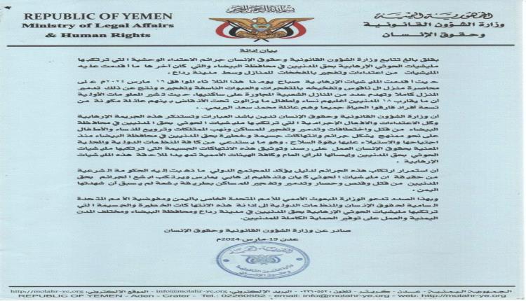 بيان حكومي حول جريمة الحوثيين في رداع بالبيضاء