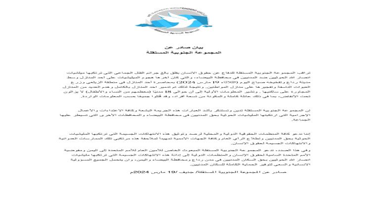 المجموعة الجنوبية المستقلة تدعو الى تحرك أممي واقليمي ومحلي بصدد جرائم الحوثيين