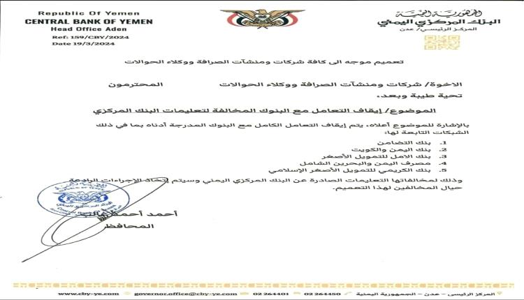 البنك المركزي : إيقاف التعامل الكامل مع هذه بنوك