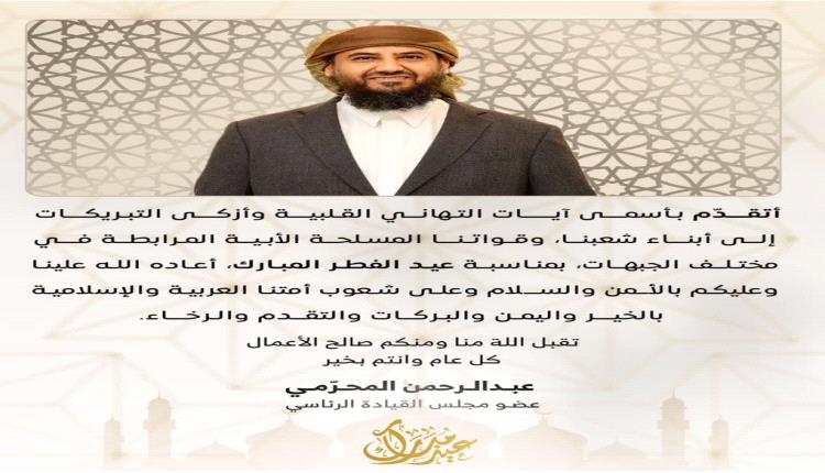 عضو مجلس القيادة الرئاسي "المحرمي" يبعث برقية تهنئة بحلول عيد الفطر المبارك