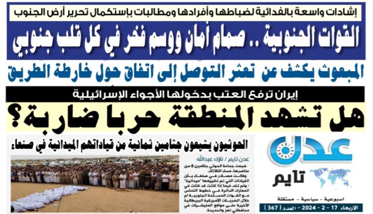 تصفح العدد الإلكتروني لـ #صحيفة  #عدن_تايم  الورقية .. عدد رقم 367