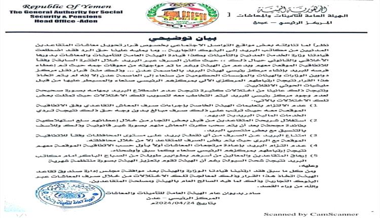 توضيح هام من الهيئة العامة للتأمينات والمعاشات بعدن عن المرتبات