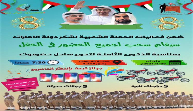 الثلاثاء..حفل جماهيري بالمكلا "شكرا دولة الإمارات"