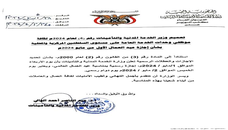 وثيقة / صدور تعميم هام باجازة عيد العمال