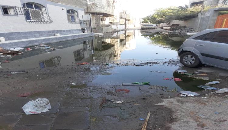 مناشدة لإنقاذ حي القاعدة الإدارية بعدن من طفح مياة الصرف الصحي
