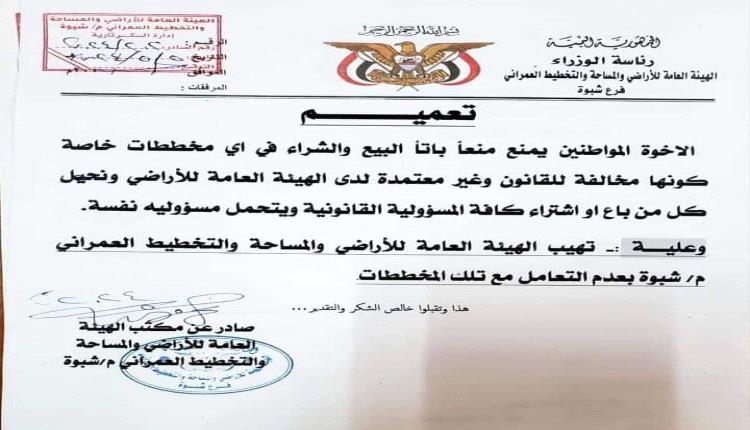 تحذير من هيئة الأراضي في شبوة (وثيقة)