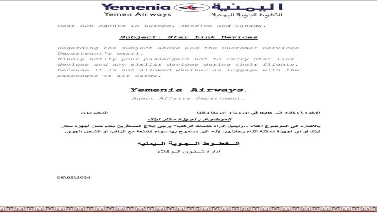 شركة الخطوط الجوية اليمنية تحظر حمل المسافرين هذا الجهاز