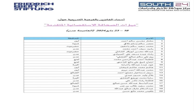 أسماء الفائزين بالورشة التدريبية النوعية "مهارات الصحافة الاستقصائية المتقدمة"