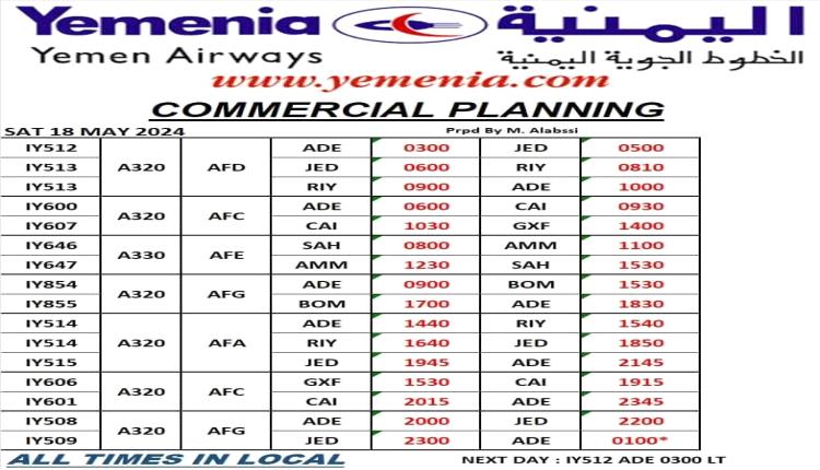 مواعيد اقلاع رحلات طيران اليمنية ليوم غد السبت