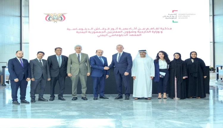 التوقيع على مذكرة تفاهم بين أكاديمية أنور قرقاش الدبلوماسية والمعهد الدبلوماسي في عدن