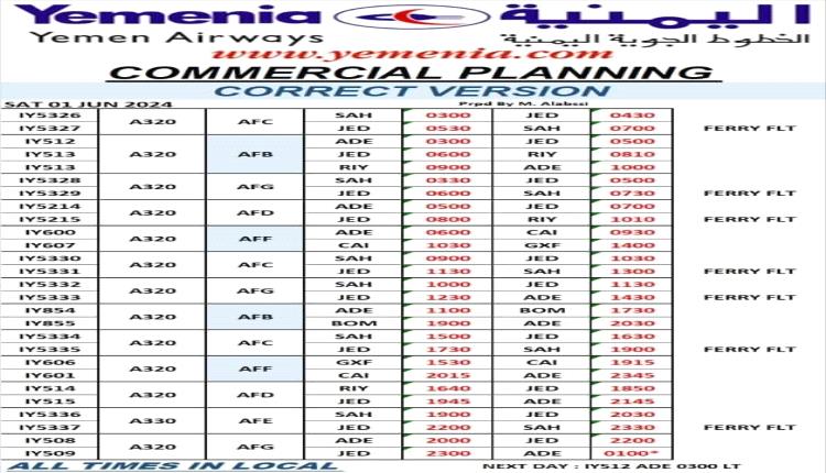 مواعيد اقلاع رحلات طيران اليمنية ليوم غد السبت