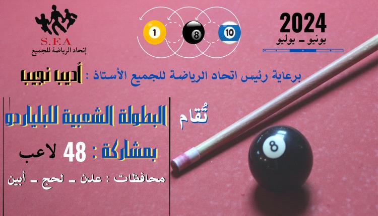 انطلاق فعاليات البطولة الشعبية للبلياردو في عدن برعاية الأستاذ/ أديب نجيب