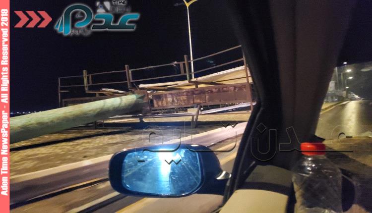 عدن تشهد هطول أمطار مصحوبة برياح تسقط اللوحات الإعلانية وتتسبب بأضرار (صور)
