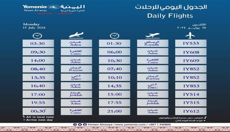 </p><p>مواعيد اقلاع رحلات طيران اليمنية ليوم غد الاثنين كالتالي:</p><p>