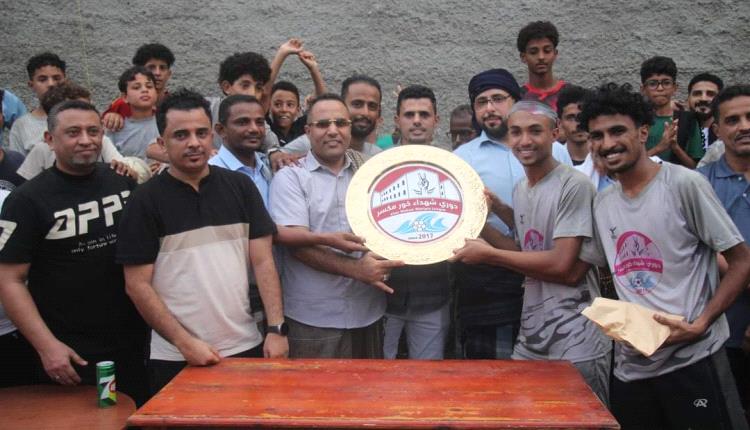توج فريق شباب الأطباء بطلاً للنسخة الثامنة من دوري شهداء خورمكسر الكروية للفرق الشعبية، وذلك بفوزه في المباراة النهائية بثلاثة أهداف مقابل هدف أمام منافسه فريق صماصيم العريش، في البطولة التي ينظمها شباب المديرية برعاية الاستاذ عارف الشعبي مدير عام تطوير موانئ عدن (ميناء الحاويات).