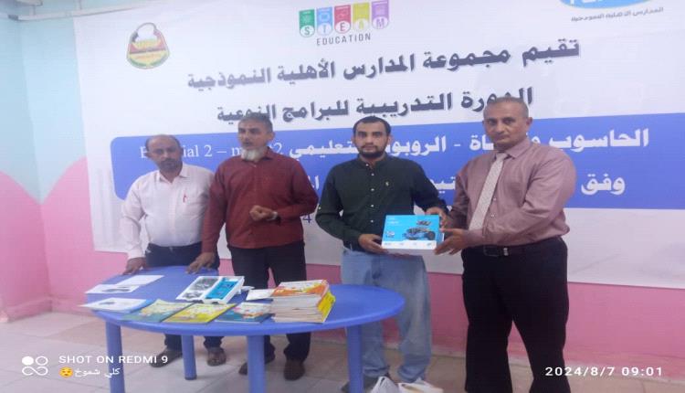 وأقيم صباح اليوم في مدرسة نماء المعلا دورة البرنامج التدريبي المكثف للبرامج النوعية بمشاركة 64 متدرب مستهدف من المعلمين والمعلمات المختصين في الحاسوب والروبوت والعلوم من مجموعة المدارس الأهلية وهي:
