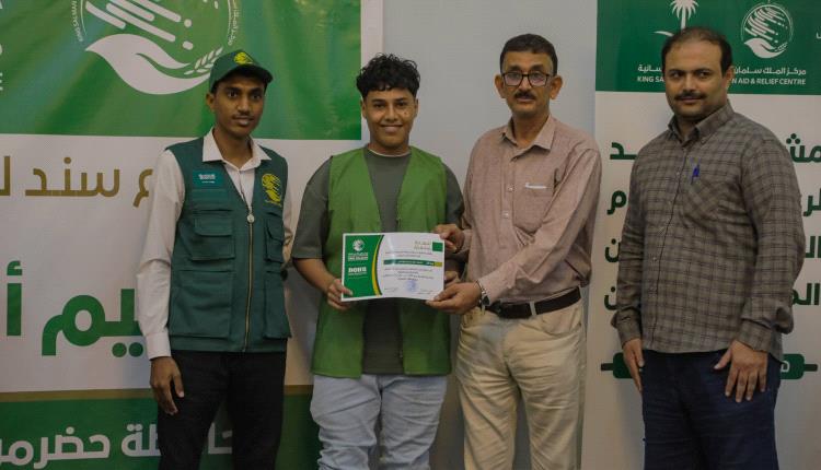 سلم مركز الملك للاغاثة والأعمال الانسانية في مدينة المكلا بمحافظة حضرموت ، الادوات المهنية للمتدربين من الايتام والمتدربات من معيلات الايتام في مهارات وأعمال الخياطة والصناعات الغذائية والتكييف والتمديدات الكهربائية وصيانة الاجهزة ، للبدء بالإنتاج واطلاق مشاريعهم الخاصة ، وياتي ذلك النشاط ضمن مشروع سند لرعاية الايتام المتضررين من الصراع باليمن، الممول من مركز الملك سلمان للإغاثة والأعمال الإنسانية وعبر الشريك المنفذ مع إئتلاف الخير للإغاثة الإنسانية .