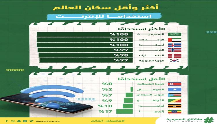أصدر الاتحاد الدولي للاتصالات بيانات عن الشعوب الأكثر والأقل استخدامًا للإنترنت حول العالم، وفقًا لقاعدة بياناته.