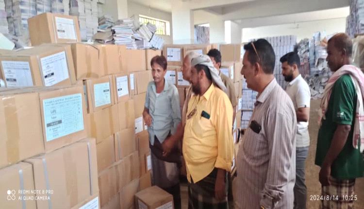 دشن صباح اليوم مدير عام مكتب التربية والتعليم بمحافظة لحج فهمي بجاش هواش تسليم كتب التلاميذ و ادلة المعلمين للصفوف من 1 الى 3 للقراءة والكتابة سوف يتم توزيعها ل8 مديريات مستهدفة بالمحافظة.
