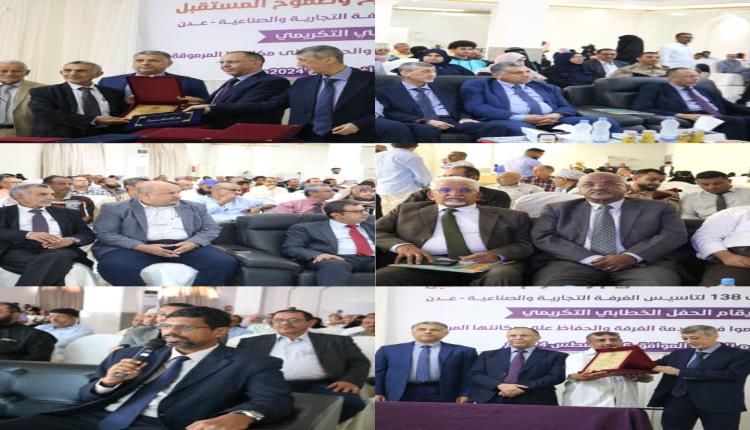 نظمت الغرفة التجارية و الصناعية صباح اليوم في العاصمة عدن الحفل الخطابي و التكريمي بمناسبة الذكرى 138 لتأسيسها، وقد تم تكريم الرجال الذين ساهموا في خدمة الغرفة والحفاظ على مكانتها المرموقة تحت شعار غرفة عدن عراقات تاريخ وطموح المستقبل.