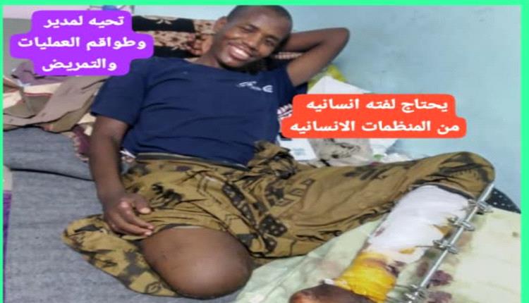 الشاب اسمه رشاد بيا حسين 20 عاماً ، ساقته الاقدار من جحيم بلاده الى جهنم الحوثي بعد ان قرر الانتقال من مديرية بيحان الى محافظة البيضا عبر عقبة القنذع التي زرعها الحوثي بالالغام فأنفجر فيه لغم الا ان الله كتب له البقاء حياً برجل مقطوعة من الركبة واخرى مهشمة ، يقوم بعض فاعلي الخير بتغذيته وشراء بعض العلاجات.. الى جانب رعاية المستشفى له ..