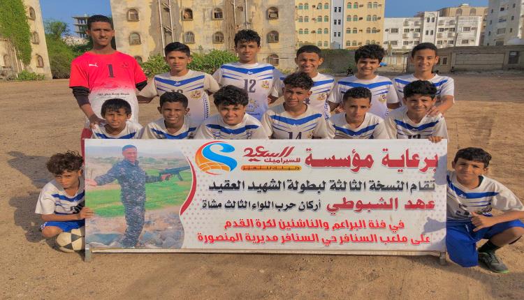 تمكن فريق الاتحاد القادم من حي عبدالعزيز من التغلب على منافسه فريق البغده القادم من مديرية صيرة في بطولة الشهيد عهد الشبوطي بنسختها الثالثه لفئة البراعم على ملعب شهداء السنافر في حي السنافر بمديرية المنصورة بنظام خروج المغلوب والتي تقام برعاية مؤسسة السعيد للسيراميك وبتنظيم الكابتن نزار السحولي والكابتن احمد الصارطي .