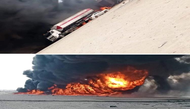 هذا وتداول نشطاء صور لاحتراق ناقلة كبيرة في محافظة شبوة، ويظهر تصاعد السنة اللهب من الناقلة، في مديرية رضوم وهي في طريقها تجاه العاصمة عدن.