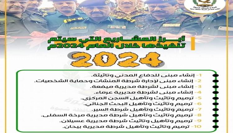 ويتم العمل على استكمال هذه المشاريع جميعا لتحسين مستوى الخدمات الأمنية وتوفير بيئة آمنة للمواطنين في محافظة شبوة.