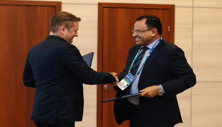 جرى في مدينة، سانت بطرسبورغ، أليوم، بين، الجمهورية اليمنية، ودولة روسيا الاتحادية، التوقيع على مذكرة تفاهم تنائي في مجال الثروة السمكية بين البلدين، على هامش فعاليات المنتدئ الدولي لصناعة الصيد، ومعرض صناعة الصيد والمأكولات البحرية والتكنولوجيا، 19-17من شهر سبتمر 2024م، وقعها عن جانب بلادنا، وزير الزراعة والري والثروة السمكية، اللواء/ سالم السقطري، وعن الجانب الروسي، رئيس الوكالة الفيدرالية الروسية لمصائد الأسماك، السيد/ شيستاكوف إيليا فاسيليفيتش، بحضور وفد بلادنا، والمكون من، وكيل الوزارة لقطاع خدمات الأنتاج والتسويق السمكي، غازي لحمر، والرئيس التنفيدي لبنك التسليف التعاوني الزراعي، حاشد الهمداني، ورئيس مجلس إدارة مصنع المكلا لتعليب الأسماك، عمر باوزير، ومدير عام شركة التميمي للأسماك، حسين التميمي.