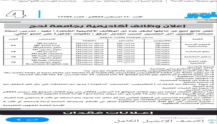 وقد ذيلت رئاسة الجامعة في كشف نتائج المقبولين بتحديد فترة تظلم حددتها بثلاث أيام ابتداء من تاريخ 9سبتمبر وتنتهي في 11 سبتمبر 2024 في خرق واضح للمدة المحددة لقبول المتقدمين لطلب التوظيف ، اي إن موعد التظلم ياتي قبل مايقارب شهر من انتهاء فترة التقديم للتوظيف المحدده في الاعلان.