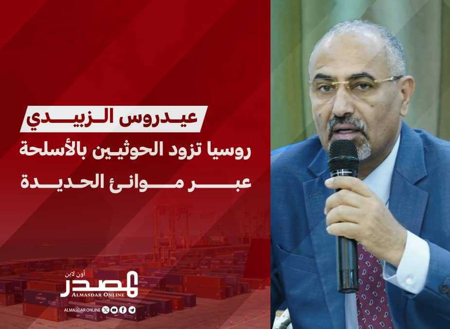 قال رئيس المجلس الانتقالي الجنوبي، عضو مجلس القيادة الرئاسي، عيدروس الزُبيدي، إن روسيا تزود الحوثيين بالأسلحة المتطورة عبر ميناء الحديدة.