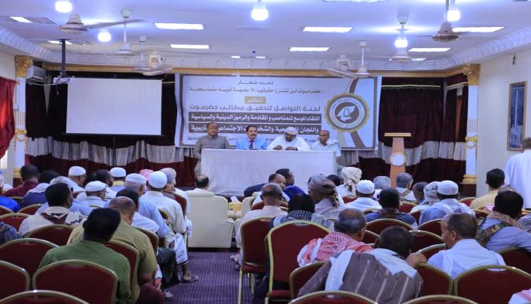 واستعرض نائب رئيس لجنة التواصل لتحقيق مطالب حضرموت الشيخ مبارك عبدالله بن عبودان الجابري أعمال اللجنة ولقاءاتها مع المكونات والقوى الفاعلة والشخصيات الأكاديمية والاجتماعية والاعتبارية والمؤسسات الخدمية والعسكرية والأمنية والسلطات المحلية بالمحافظة ، مشيرا إلى أن اللجنة برئاسة الأستاذ محمد عبدالله الحامد تحرص على توحيد الرؤى والمواقف تجاه انتزاع حقوق حضرموت بإجماع كافة القوى الفاعلة.