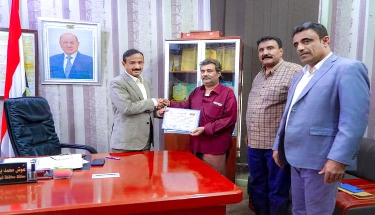 في خطوة تعكس تقديره الكبير للجهود المبذولة في سبيل تحسين مستوى الخدمات المقدمة للمواطنين ، كرم محافظ محافظة شبوة، رئيس المجلس المحلي عوض محمد بن الوزير، عدد من الفنيين العاملين في مؤسسة كهرباء شبوة، تقديراً لجهودهم الاستثنائية في إصلاح خطوط الكهرباء التي تضررت جراء الأمطار والرياح الشديدة التي شهدتها المحافظة خلال الشهر الماضي.
