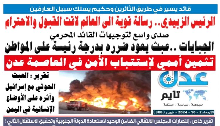 تصفح صحيفة عدن تايم بعددها رقم 388 الالكتروني .