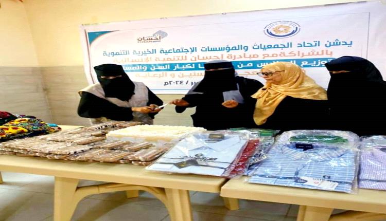 دشن اتحاد الجمعيات والمؤسسات الاجتماعية الخيرية التنموية، بالشراكة مع مبادرة إحسان للتنمية الانسانية، في دار العجزة والمسنين والرعاية، اليوم، بالعاصمة عدن، توزيع الملابس لنزلاء الدار من المشاغل التي قدم اقمشتها الاتحاد، دعما منه للعمل الخيري.