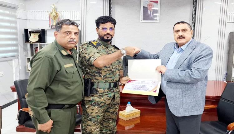 كرّم مدير أمن العاصمة عدن اللواء الركن مطهر الشعيبي، اليوم الأحد، الملازم أول عبدالله علي محمد الزامكي، نظير تفانيه في عمله وإخلاصه في تنفيذ المهام والواجبات الأمنية في شرطة مديرية الشيخ عثمان.