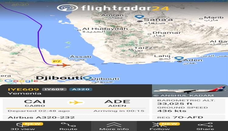 ولم يصدر عن اليمنية اي بيان عن تغيير مسار الطائرة التي لم تصل إلى عدن بعد.