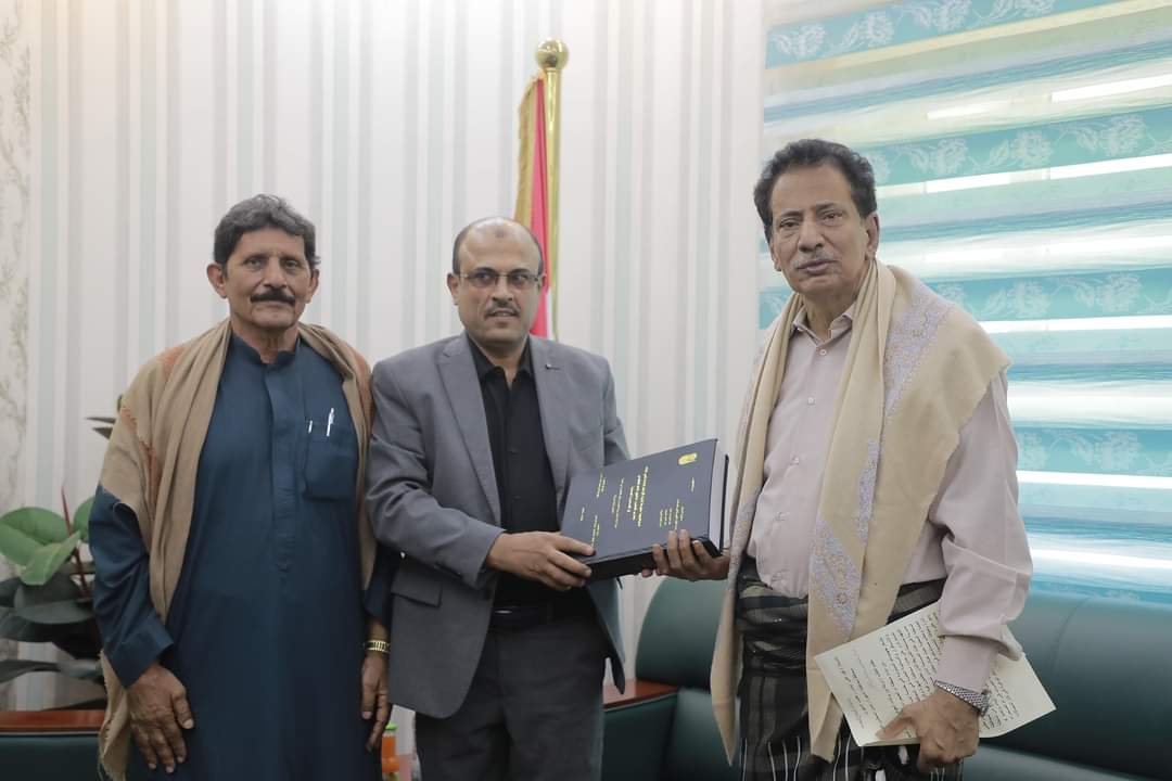 وفي ختام اللقاء، أهدى الدكتور رشيد الصلاحي نسخة من رسالة الدكتوراه الخاصة به إلى المحافظ، والتي كانت بعنوان "استراتيجية مقترحة لإدارة الأزمات العامة التي تواجه مدارس التعليم الثانوي العام الحكومي في الجمهورية اليمنية".