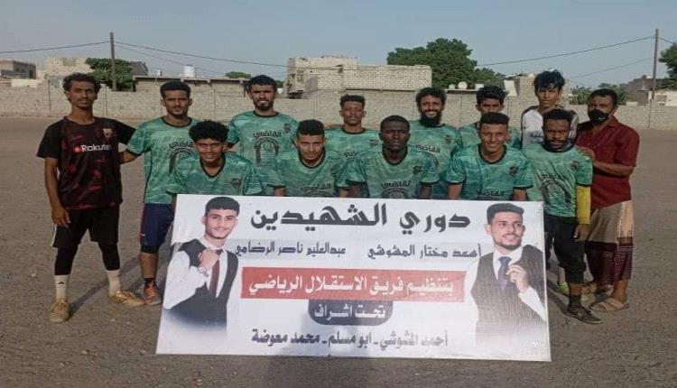 تمكن فريق أبطال عبدالقوي من هزيمة فريق شباب الخيسه بنتيجة هدفين مقابل لاشيء في مباراة اليوم من مباريات الدور الاول في بطولة الشهيدين أسعد مختار المشوشي وعبدالعليم ناصر الرضامي المقامة على ملعب بئر أحمد الكبير بنظام خروج المغلوب والتي تقام بأشراف فريق الاستقلال الرياضي وبتنظيم من قبل الكابتن أحمد المشوشي وابومسلم و محمد معوضه بمشاركة فوق 50 فريق شعبيآ من محافظة أبين ولحج والعاصمة عدن .