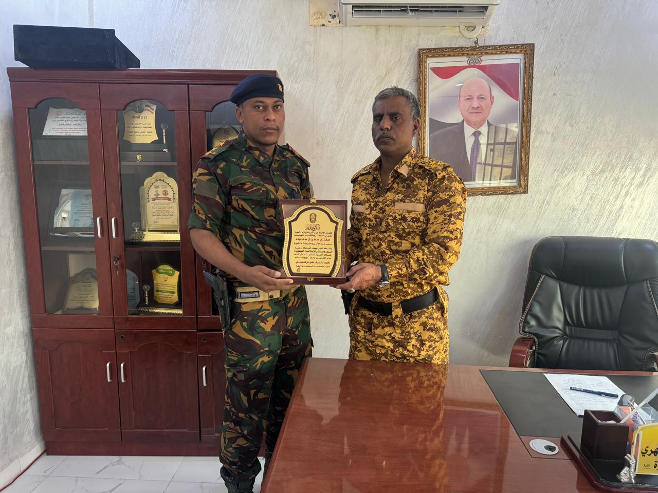 قام مدير السجن المركزي في المهرة، النقيب نائف نهيم النوحي، بتكريم مدير الأمن والشرطة بمحافظة المهرة، العميد مفتي سهيل صمودة، بدرع شكر وتقدير، وذلك تقديراً لجهوده ودعمه الكبير لمصلحة السجون في المحافظة.